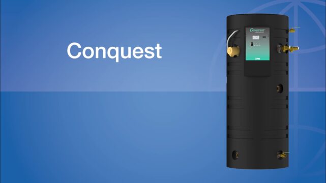 Conquest® 100 is a compact, condensing, semi-instantaneous, firetube water heater that combines an advanced fuel-saving design with extended product life. It features a submerged combustion chamber and a heat exchanger with a dimpled array of firetubes fabricated entirely from durable, corrosion-resistant AquaPLEX duplex stainless steel alloy. Built from the best material, Conquest provides superior payback with 3-5 times the warranty of competitors.